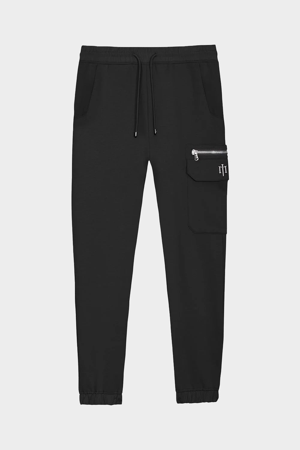 Pants cargo omega est composé de double poches avec zip et rabat ainsi qu’un écusson du logo en silicone, tour de taille matière Kway, et cordon avec embout en métal gravé.