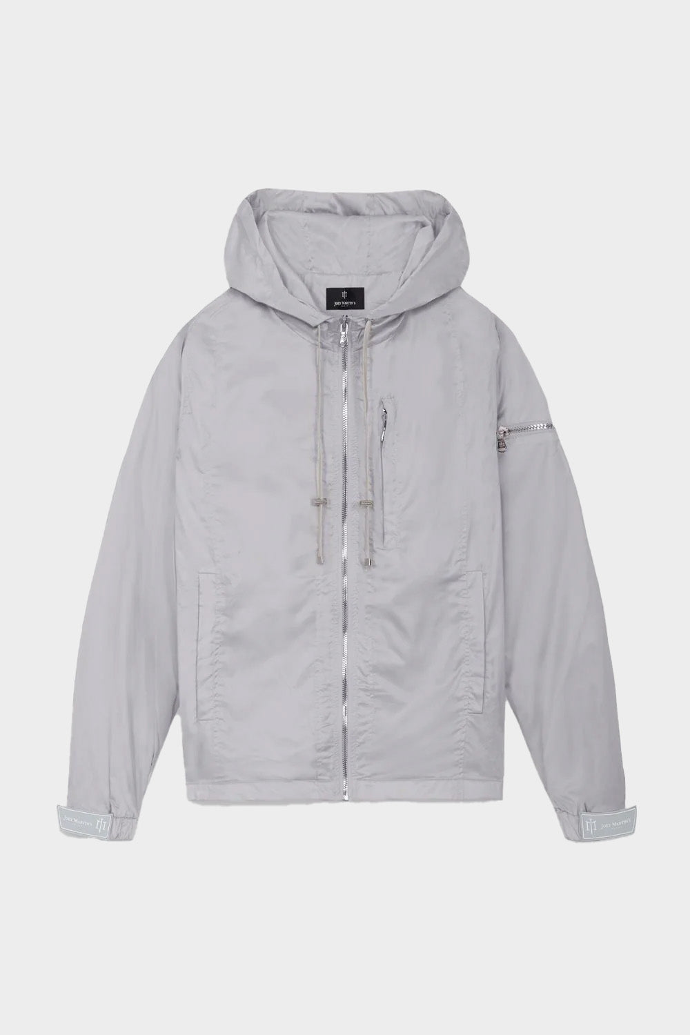 Jacket gris avec scratch au niveau des poignées, zip argenté, avec serrage sur les côtés