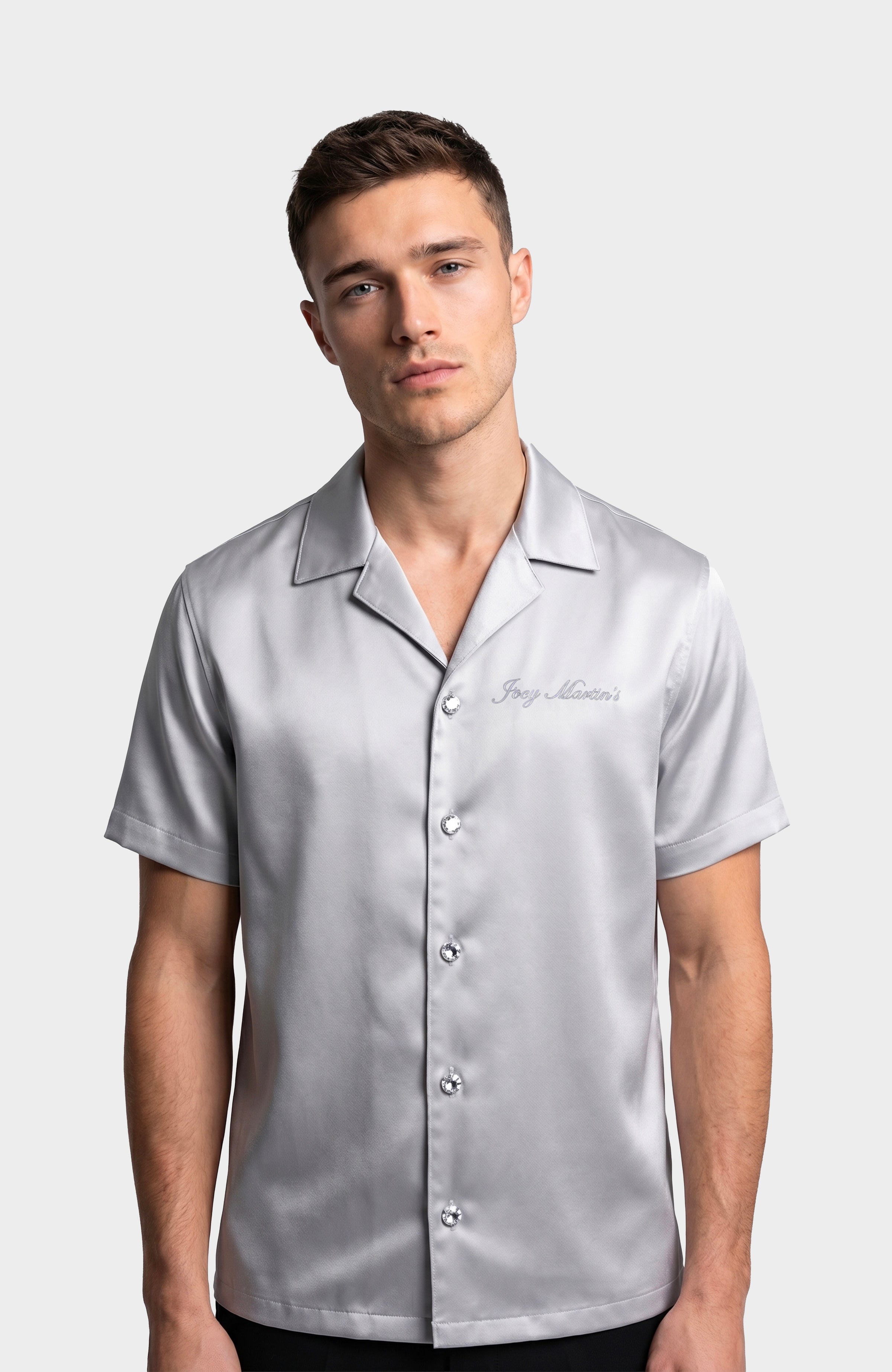 Chemise satiné avec bouton style diamant et broderie " Joey Martin's ".