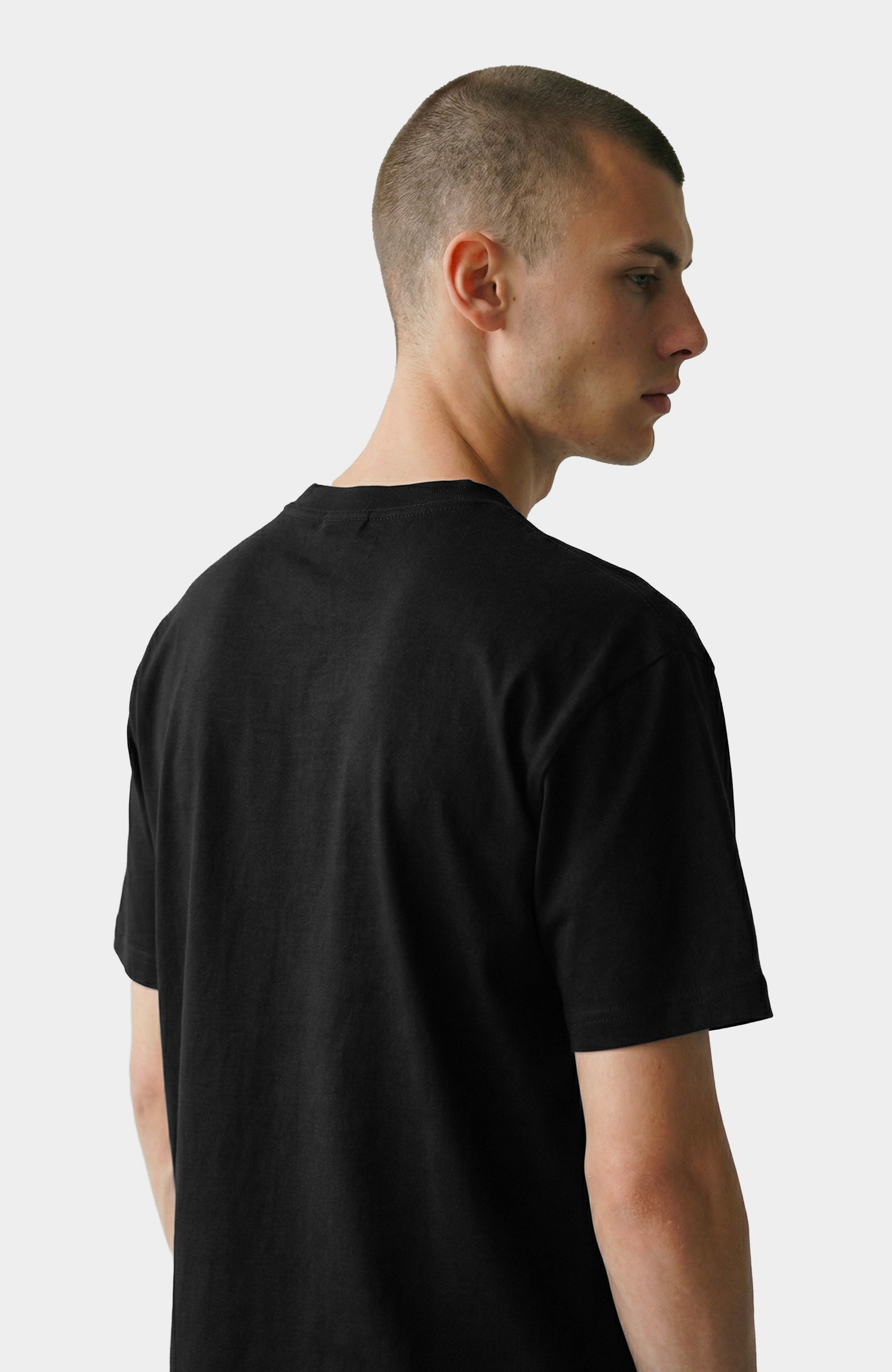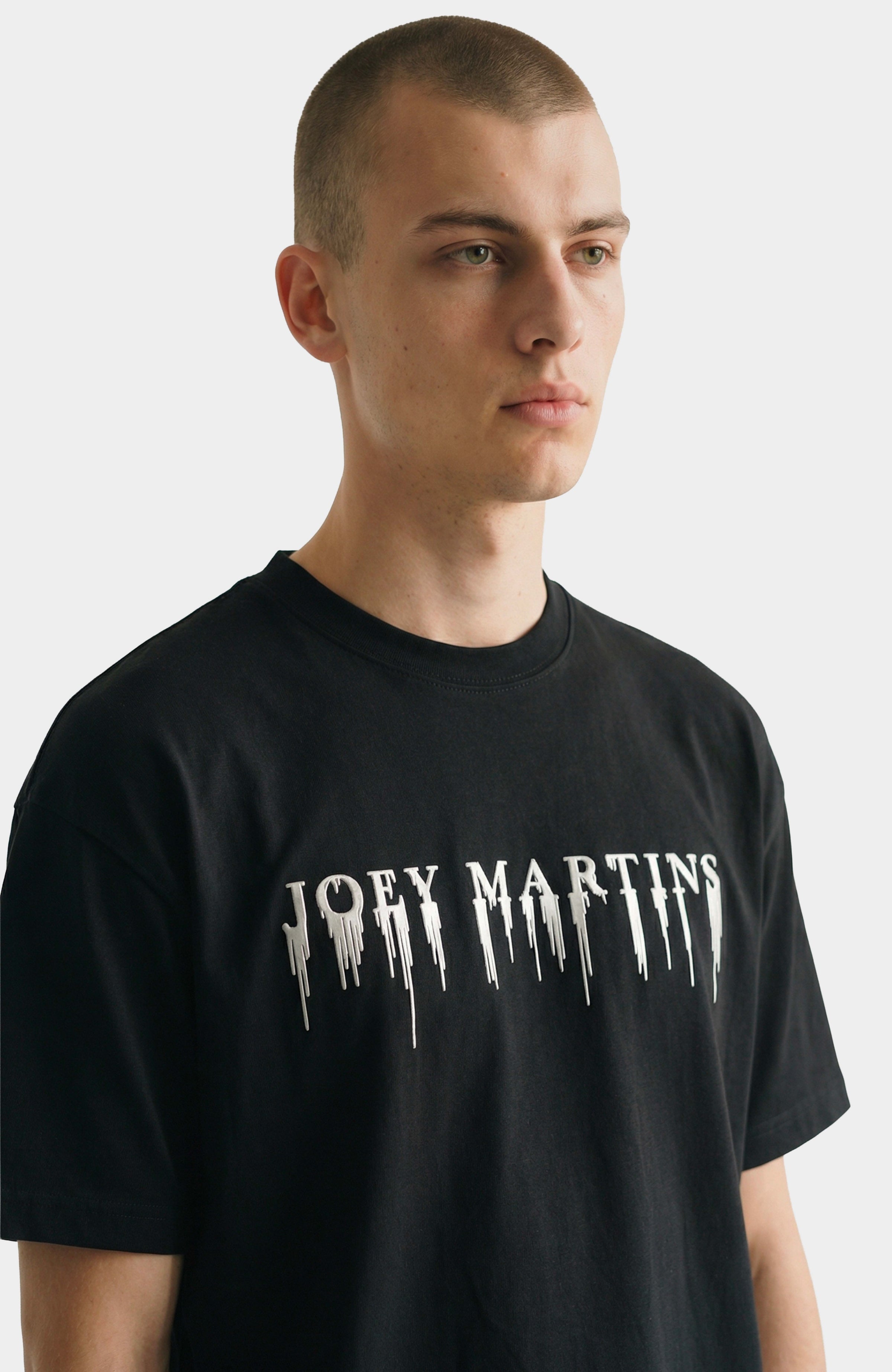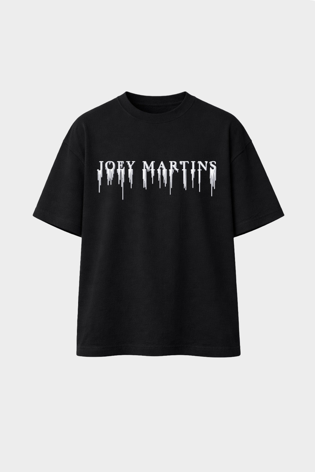 T-shirt oversize en 100% coton noir, conçu pour un confort optimal et une tenue durable. Son logo “Joey Martin’s” est imprimé en peinture siliconée argent avec un effet dégoulinant distinctif, apportant une touche artistique et contemporaine. Doté d’un col rond classique et de finitions soignées, ce t-shirt s’impose comme une pièce essentielle pour un look streetwear moderne et affirmé.
